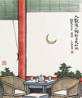 丰子恺第一篇漫画《人散后,一钩新月天如水》