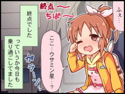 开发游戏的Cygames和Mobage的DeNA两间公司都在JR的涩谷站附近,而距涩谷站约1.5-2小时电车车程的静冈县存在着叫做宇佐美(ウサミ)的车站,所以曾有玩家推测兔兔星在静冈。后来在星光舞台的官方一格漫画里,菜菜坐电车睡过站,背景中能看到“ちば”(千叶)字样,故此可以推断兔兔星应该是在东京到千叶之间的某个地方。结合从涩谷站出发一小时的路程来分析,兔兔星在津田沼或者稻毛的可能性比较大。其后在《偶像大师 星耀季节》的跨团交流中更佐证了「从兔兔星出发一小时的路程」的说法(因为有玩家推测Project LUMINOUS的事务所在横滨)。 此外,前川未来的SR「EVERMORE」特训前的背景暗指举办了灰姑娘1st Live的舞滨圆形剧场,而未来的台词说她们当天晚上要住在附近的菜菜家……兔兔星根本不是秘密啊! |