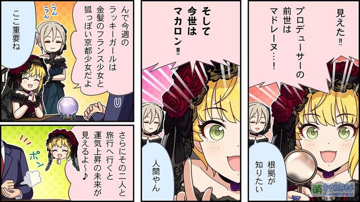 - MLTD中似乎对765事务所的制作人的一些事情有好奇心,但是见到制作人就会忘记想问什么。