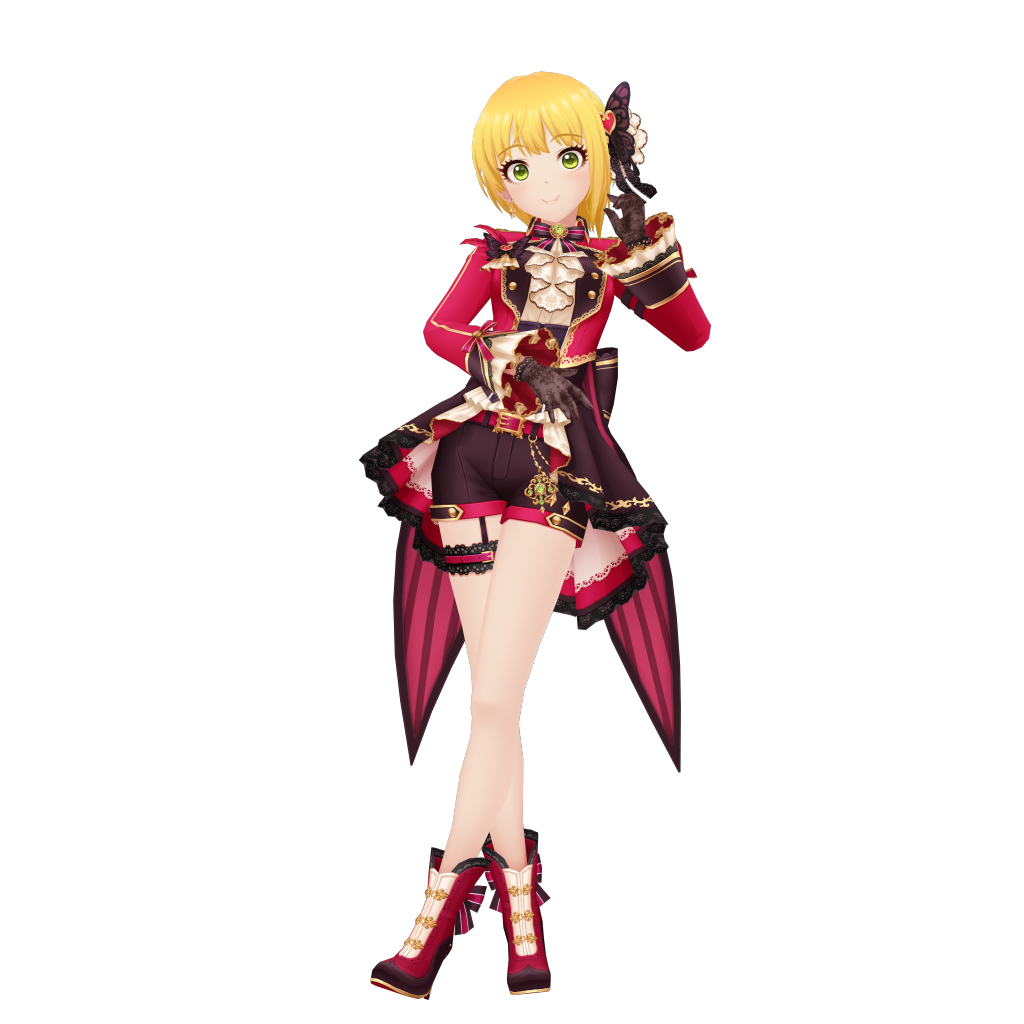 初始卡的特技是「小恶魔之吻」,特训后的一些服装也是以小恶魔为主题。