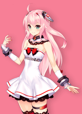 外形为16岁的粉发绿瞳少女,身高是162厘米,体重是0。头上安装有一对散热器。
