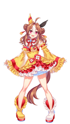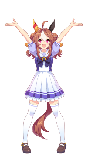 | 萌点 | 马娘、兽耳、真·马尾、挑染、中长发、丸子头、呆毛、耳套、短靴、虎牙、占卜师、元气、口癖、星间飞行、姐姐、强运(拥有风水光环时)、冒失(失去风水光环后) | |