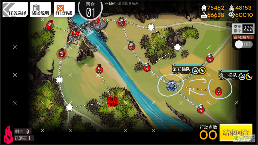 | 打捞说明 | 3HG队第一回合往右走三格。第二回合往右走两格再走回来。 第三回合在中间机场部署狗粮,撤退。一次三喵王。 |