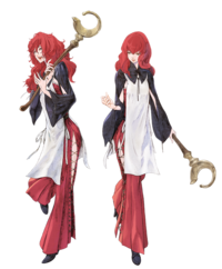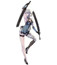 与她性感的外表相反,她的词汇和态度都粗鲁且暴力的。她使用双剑,残忍地杀死任何挡在她路上的魔物。