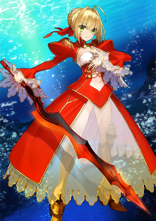 Saber所持的深红大剑,她作为Saber职阶被召唤时带进来的武器。剑上刻着regnum caelorum et gehenna的铭(拉丁语中指天堂与地狱 )。CCC中花嫁尼禄的大剑变成了白色。