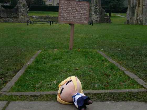 《Fate/stay night UBW》TV动画最后一话中士郎 和凛 去英格兰西南方小镇格拉斯顿伯里参观传说找到亚瑟王骸骨的格拉斯顿伯里修道院遗迹(修道院本身于16世纪亨利八世发起的宗教改革运动中被毁,现为遗址公园)。动画中的场景均以实际风景为原形,其中士郎和凛乘坐巴士的场景是以从格拉斯顿伯里山上俯瞰的景色为原型,实际从巴斯或布里斯托到格拉斯顿伯里的巴士线路并不经过那里。