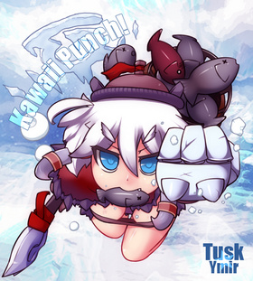 那是场值得铭记的干架。当时号称“冰盾之惧”的巨牙海民尤蜜尔,也被称作钴蓝冰原的雪球少幼女,她是唯一光明正大地打败刚背格斗家·瑞歌媪的战士。当她路过狼穴酒馆休息时,被四名绅士性骚扰,然而却被优蜜尔打的脸青鼻肿。酒馆里的雇佣兵们对此极为感兴趣,对她发起扳手腕的邀请。然而,原本是一场关于谁力气最大的酒吧小赌,却因为互相的不服气最终演变成了聚众斗殴。结果却是那四名绅士,一名铁匠,一名猛犸人还有六名来自霜寒军旅的一流士兵都被她打得落花流水,酒馆里的桌椅瓶罐几乎都没有幸免。而她自鸣得意,端起酒杯一饮而尽。