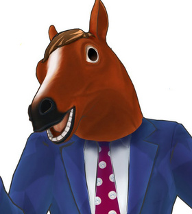 根据马头本人自述是戴著马头面具里面有人头的样子,不是长著马头。