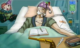 回到七年前的夜晚,枪杀天斋的既不是友画,也不是植说,而是他本人。 2019年4月13日,天斋已是身患重病的老人,体检报告显示他最多只有三个月寿命了。为了痛快地死去,同时交代后事,他给自己的两个弟子分别写信,信的内容是让他们“为自己拉下生命的帷幕”,当晚特定时间来他的病房,用他准备好的表演用手枪朝着额头开一枪。实际上这是他设下的考验,信的真实意图是让他们对着病房里的小丑人偶的额头开枪,哪个弟子能理解这层含义,他就把魔术表演权、魔术手法和表演方式交给谁。当然对被病痛折磨的他而言,被枪击而死也能接受。顺便一提,友画约定的时间比植说要早15分钟,因此有优先选择权。 夜晚,友画按照约定好的时间先来到了病房,虽然他不知道考验的事,但他选择举枪射击小丑人偶的额头。装睡的天斋睁开眼睛,告诉友画他通过了考验,写了一页手稿,指名友画为魔术表演权、魔术手法和表演方式的继承人。友画带着这页手稿离开了。 之后,植说也来到了病房。他实际上早已知道友画收到了和他一样的信,明白了这是一场考验,而且友画约定的时间比他更早,对他是不利的。他本来心生邪念,做好了枪杀天斋再嫁祸给友画,夺得魔术表演权的准备,但是他走进病房,发现天斋还活着之后,还是狠不下心杀人,放弃了计划。植说在和天斋交谈了几句,得知表演权已经传给友画后,绝望地离开了病房。 然而,植说刚走出病房就听到一声枪响。在他背后,天斋用手枪对着自己的额头开枪自杀了。他返回病房,发现天斋已死,邪念再次复苏。他把现场伪造成了“先到的友画枪杀了天斋”的样子,然后报警了。很快,友画作为枪杀天斋的嫌疑人被捕了。
