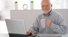 - 摄影师邀请奥劳托·安德拉斯·伊什特万拍摄了一系列用于广告的照片,仅仅在数个月后(约2011年[2])他的一张手持水杯,坐在笔记本电脑前的照片被冠以Hide the Pain Harold的配字在英文网络社区上流传。