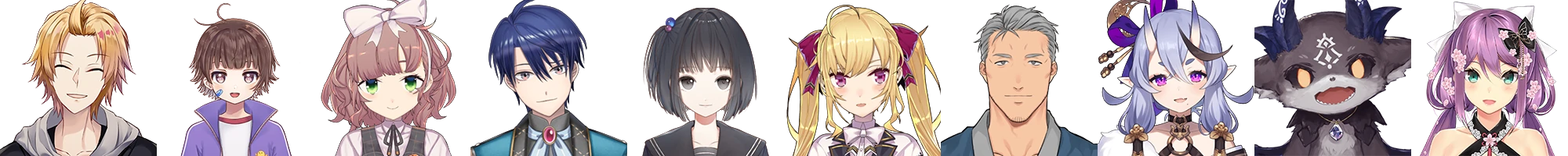 一期生·LazuLight | | | 二期生·OBSYDIA | | | 三期生·Ethyria | | | 四期生·Luxiem | | | 五期生·Noctyx | | | 六期生·ILUNA | | | 七期生·XSOLEIL | | | 八期生·Krisis | | | 九期生·TTT | | | 十期生·Denauth | | | 十一期生·BYTHEBEAT | |