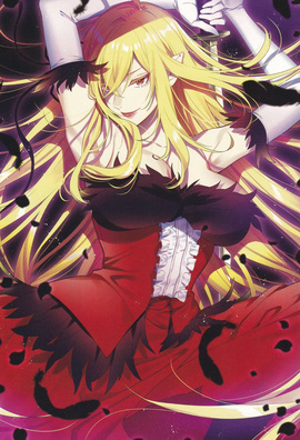 《伤物语》中被吸血鬼猎人追杀,失去双手双脚,但吸了阿良良木历的血而保住一命。因此也愿意为垃圾君献出生命