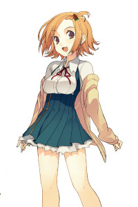 不管情绪如何低落也是尽量保持笑容, 母亲和两个弟弟的四人家庭,没有父亲(离婚)。 在进入高藤之前一直是代替工作的妈妈当主妇,家事万能。 初中时代挺受欢迎,但因为有家务要做所以没交往过。 在进入高藤后受到差别对待,所以没有男生追求她。 “啊、前辈! 今天是在这里吃午饭吗?” | |