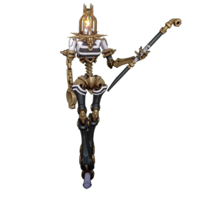 代码受到影响后的错误投影。参照本体为美梦剧团中扮饰囚徒的艺者。本应于「谐乐大典」之中献演,如今却被「秩序」所缚,上演着关于「过去」的剧目。往昔是不朽的锁链,安宁的火苗在笼中点亮,以烛光招引司狱的权臣。
