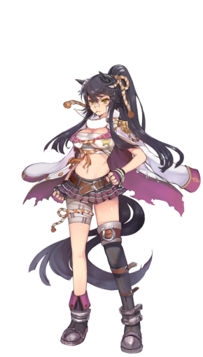 | 萌点 | 马娘、兽耳、真·马尾、单马尾、长鬓角、斜刘海、头带、创可贴、巨乳、有胸的帅哥、无口、认真、叼树枝、学生会副会长、挑食、妹妹、露指手套、露脐装、百褶裙、腿环、长短靴 | |