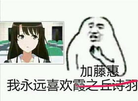 表情包制作人所在的群发生了大规模学姐党、梨党叛变为惠党的情况,惠党则变成了惠痴(无误)便就顺手p了一张字写着霞之丘诗羽,图片却是加藤惠的表情包来调侃一下,谁知一不小心成了万恶之源。