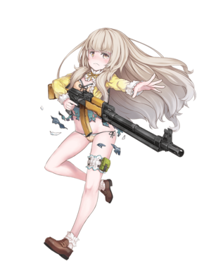 嗨~!!它就是苏联将AK47作为分队支援武器进行再次设计的轻机关枪。这把枪超级轻、超级轻呀!!就算装填30发子弹后重量也仅仅为5.85kg哦!!但是,由于在枪体下部安装了大且长的弹夹因此无法做到伏地射击……枪手的中枪率也会很高……此外,由于没有弹仓更换功能因此有着无法长时间连续射击的缺点呢……