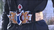 左右两侧各具有一个转轮的腰带,中间则是能量钥匙的插槽。 猛焰与狂飓属日之能量,相同属性能量之间互相转换。 只需掌握好召唤时间召唤者便可获得猛焰与狂飓双重力量,以及循环不绝的能量合体铠甲。 |