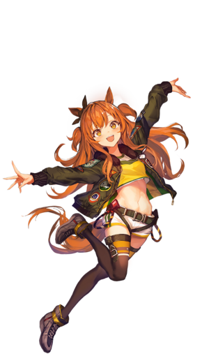 | 萌点 | 马娘、兽耳、真·马尾、披肩双马尾、长鬓角、军服、热裤、露脐装、兔耳蝴蝶结、黑色过膝袜、运动鞋、萝莉、元气、小恶魔系、撒娇、天才、第三人称己称、贪睡[4]、航空迷 | |