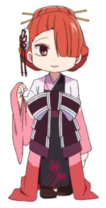 随身携带红色纸伞,伞柄中藏有一柄胁差短剑。剑术精湛。