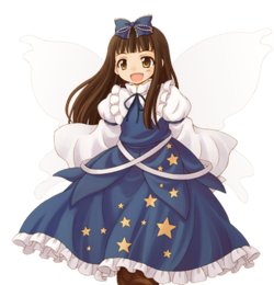 | 萌点 | 妖精、三人娘、腹黑、贤惠、黑长直、翅膀、万年萝莉、连衣裙、大蝴蝶结、领结、长靴 |