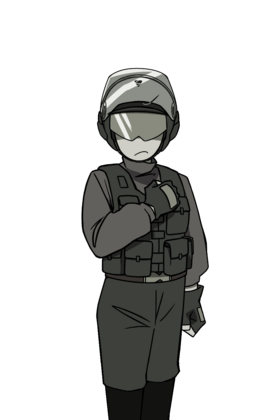 在游戏中,新人总是穿着收口长袖的上衣、作战背心和头盔,戴无指手套,穿黑色的长靴。他的脸被头盔的护目镜遮住了一半,嘴里的牙尖尖的。胖次是灰色。