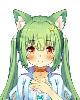 绿发红瞳的猫耳娘形象,由画师 nerv110[微博] 设计,Iron Vertex 社团建模师 etctr[推特] 建模。[2][3]