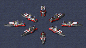 无畏级战舰配备的导弹能造成极高的伤害,尤其是对建筑。不过其导弹只能攻击定点,可以移动的单位能够躲避无畏级战舰的导弹。