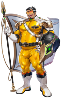 ヒーローに变身したサオトメは、自身がイメージする「观光大使らしい衣装」に身を包む。そんなサオトメのパラレルウェポンは、身の丈を优に超える大旗と、顽强なタワーシールド。盾で仲间を守りつつ、大旗を振り回して味方を鼓舞する战法を得意とする。それは、エノシマを守り、皆を明るい未来に导くという强い愿いが战い方に反映されたもの。大旗の先端に装着されたブレードを开放することで、枪として扱うこともできるが、サオトメの愿いの本质は守ることであるため、攻击力はそれほど高くない。
