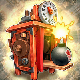 ●表侧守备表示存在的名字带有「机巧/カラクリ」的怪兽被选择作为攻击对象时才能发动。对方场上表侧表示存在的怪兽全部破坏。