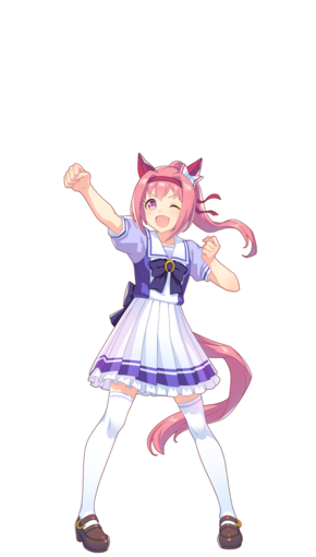 | 萌点 | 马娘、兽耳、真·马尾、高马尾、进气口发型、耳套、头带、日式学校体操服、四分之三袜、创可贴、花形瞳孔、萝莉、元气、治愈系、话痨 | |