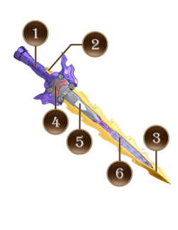 | ③Gold Slave | 暗黑剑月暗的剑刃 在暗黑的深渊中经过漫长岁月打磨的金黄色之刃,拥有越面向光锋利度便越高的特性 在优秀的使用者手中甚至连空间都能切裂 |