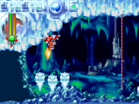 在地面按住“↑”键+跳跃键发动。杰洛首先会进行大跳跃,当接触到天花板时,杰洛则会倒立吸附在天花板上。在吸附于天花板的状态下,再度攻击时,杰洛就会挥动变化成冰刀刃的Z剑,同时往下方射出三块冰锥攻击。在特别武器能量用完时,仍然可以大跳跃,但是无法使用冰锥攻击。