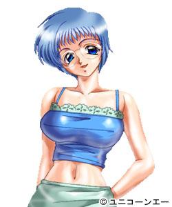 一身都是蓝色调,蓝色短发、蓝色眼睛,常穿的露脐上衣也是蓝色。