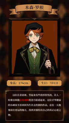 - 在本森的好感事件“祭坛偶遇”和“拍卖会的真迹”中,本森都在和卖赝品的诈骗分子做斗争,被玩家们送上了“国家反诈APP”的绰号。