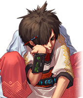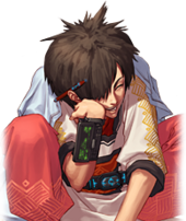 你说我看起来很闲?每次我一想做什么,就有人对我刨根问底,在这种状况下,我还能做些什么呢。只好谁睡午觉咯、哈~~欠。最近我睡得太多,头都开始痛了。看来我得吃点药了吗……啊,说到药,我又想起了上次的噩梦……那个老太婆……从那以后,我吃东西的时候都要仔细检查饭里有没有毒!啊啊,想想头又更痛了……你先走吧。我要躺着再休息一会儿…… |
