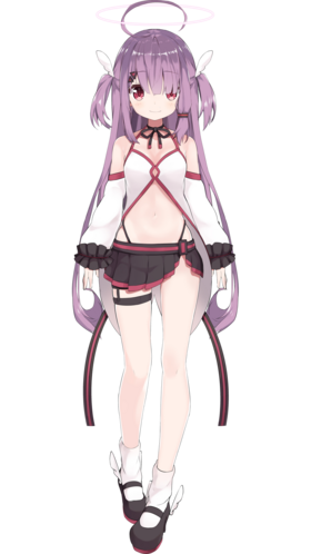 形象是头顶光环的优雅天使,耳畔有羽毛发饰,有着长长的可以弯曲的呆毛。