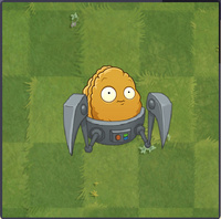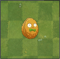 | 坚果卫星 围绕3个属性的坚果核,攻击靠近的僵尸。 (每隔20秒生成三枚不同属性的坚果核:火焰坚果核的伤害为90点,为群体伤害,范围与椰子加农炮的溅射范围一致;寒冰坚果核的伤害为60点并附加10秒的寒冷效果;电能坚果核的伤害为90点并附加0秒~1秒的麻痹效果。[2]索敌范围为前方两格,但坚果核射程为前方直线。坚果墙会在索敌成功后的0秒~3.5秒内发动攻击,之后的攻击间隔为3.35秒~3.5秒。只有当周围没有坚果核环绕时,坚果墙才会试图去生成新的三枚坚果核。) |