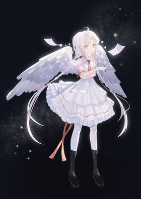 喜欢咕咕咕,有一头白色秀发和一对丰满的白色翅膀,在有灵感的时候会拔下一根羽毛进行写作。