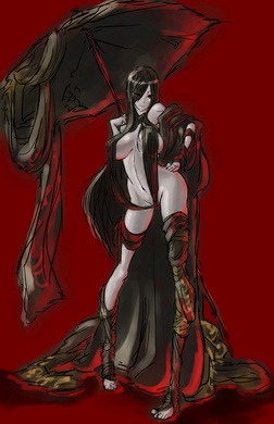 在绘师なめ雄笔下的暗人娘的设定上,暗人娘一般都十分丰满,身材也相当不错,她们也和游戏里的暗人一样,拿着遮挡太阳的蝙蝠伞。但是在穿着上,相比原作的用黑布和黑色和服把自己包裹的严严实实的设定有所不同。 “人类都已经灭亡,而且太阳都被母胎遮住了,也就没有必要穿那么多了”