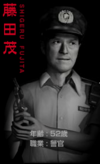 原先是身为警备辅长的身份,之后在1986年5月3日抓捕盗窃犯的时候因为其判断失误事实上,当时藤田茂已经抓住了盗窃犯,但是盗窃犯说要先见双亲,再让他逮捕,于是藤田茂相信了他的话让盗窃犯逃走,之后被降职为巡查部长。十分关照家里人,但是其妻子与女儿朝子(あさこ)对他的关系十分疏远,并且认为他只是想出风头,但是实际上他只想做个好警察。在异界的布莱特温号上遇到了矢仓市子。之后相遇的两人将逃离夜见岛作为其目标,之后在逃离的途中,矢仓市子作为“模仿体”的身份觉醒。在冥府之门打开之时杀害了藤田茂。在那之后化作暗人零式,之后被木船郁子以及所持的「灭爻树·藤田茂铭」给消灭,被消灭之前的一番话“原来如此,你也是那个……”使得木船郁子真正的身份的谜底在这时才真正的揭开。在设定中也是类似于高仓健所扮演的角色,在整个游戏剧情中是有着最悲惨的结局的角色。