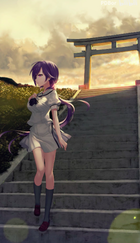 在Pocket线结尾,整理了一个暑假的仓库而没有和任何一位女主角相识的羽依里在暑假末尾离岛回家的那一天,在港口碰到了抱着布偶的䌷和静久。二人正聊着去灯塔那边玩。 |
