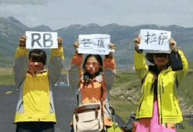然而实际上这个根本就是杜撰的假文章,原图也是P成的,川藏线上根本没有什么人会举“求RB”的牌。