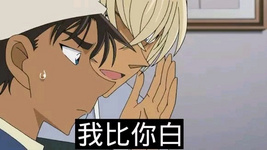 - 我比你白:指在TV版《在波洛咖啡厅解谜》剧集中,安室透与服部平次两人同框,虽然官方设定中两人的肤色是相同的,但在该剧集中安室却比服部白,由于两人同框的第一个分镜是安室用手挡着在服部耳边说话,经过网友加工之后就变成了安室在服部耳边嘲讽道“我比你白”。“我比你白.jpg”也是指代这一场景。