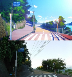 Aqours出道单曲的试听视频公开之后,便有热心考据群众发现学校的原型是位于静冈县沼津市的沼津市立长井崎中学(日语: