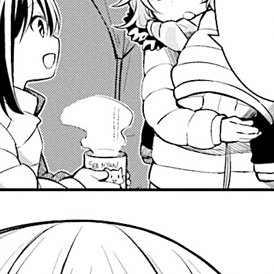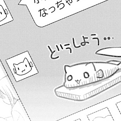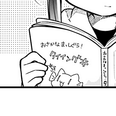 作者绘制的一篇四格漫画解释了海喵的诞生之谜——海喵是鱼和猫对撞的产物。该漫画最早出现在漫画第2卷海凪日和所穿T恤衫的印花上。