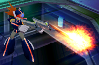 发射极高温度的火焰球,在命中目标之后,会产生巨大的烈焰圆阵。集气攻击则是命中目标后,会产生大量的烈焰圆阵。此时艾克赛尔的枪变成双枪,可以进行复数攻击。