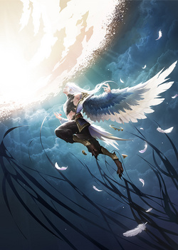 他从苏醒后眼前便是一片黑暗,他看不到天的样子,却能感受到内心有对它的渴望。他总是梦到自己穿梭于流云之中,感受到风拂过身躯,仿佛自己是一只小鸟。 那是一种轻盈的感觉—— 感觉他应当张开手臂就可以向上飞去,飞得很高、很远。只要他不想,就可以永远不下落。 于是他也试图这么做了。 结局当然是失败的。没有翅膀的身躯,又怎能渴望天际的自由? 现在,东神城里的人说,云中神君总是在天穹上俯视着大地。 有人说,那是因为他是最自由的神巫,他的翅膀可以带他去任何地方。 也有人说,不,他是最守序的神巫,他在听从东神安排,从空中监视森林的一举一动。哪怕看不见,他也能用想象勾勒所有画面。