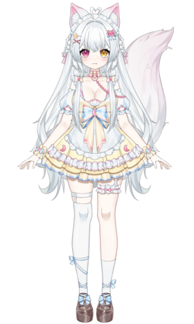 | 萌点 | 狐娘、狐耳、吃货、进气口发型、心形呆毛、分离袖子、女仆装、长短袜、巨乳、麻花辫、披肩双马尾 | |