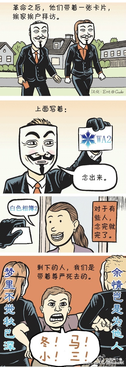 http://p1.pstatp.com/large/2d7000af2e7b75b924d.jpg 这是最著名的一张图片。 来源于电影《V字仇杀队》,改图是由微博用户 神户小鸟_ 制作。 |